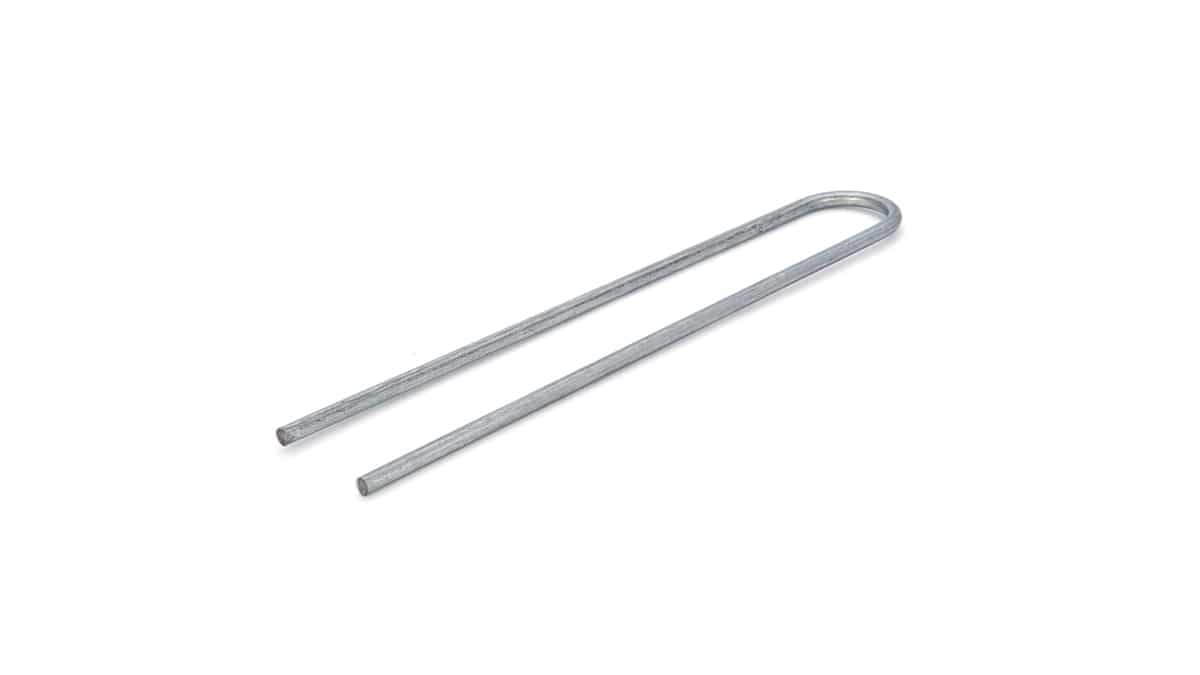 Grapas galvanizadas de 17 cm con horquilla fabricadas a partir de alambre acerado en frío y galvanizado por inmersión caliente para sujeción del césped artificial.